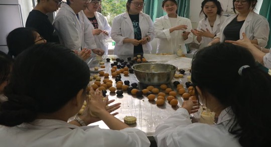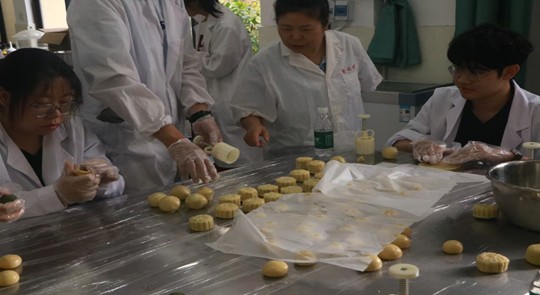 制作过程中,师生们分工协作,或专注揉制面团,或细致填充馅料,或耐心使用模具定型,实验室里洋溢着协作的默契与节日的温馨。本次制作月饼活动不仅让大家亲身体验了传统美食的制作工艺,更将食品科学与工程的专业知识与中秋文化深度融合,展现了我们师生对传统饮食文化的传承与创新。