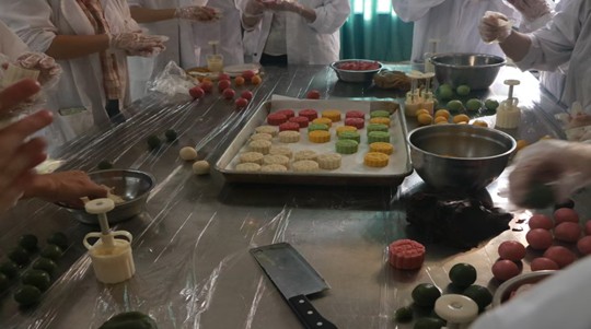 活动现场,我们师生们身着白色实验服,在胡亚琴副院长指导下有条不紊地开展月饼制作。从饼皮的揉制、馅料的调配,到模具的压制,每一个环节都融入了食品专业的严谨。大家充分发挥创意,制作出色彩缤纷、造型各异的月饼,也有传统样式的莲蓉、豆沙月饼,黄色、粉色、绿色的月饼在烤盘上错落摆放,宛如一件件精致的食品艺术品。