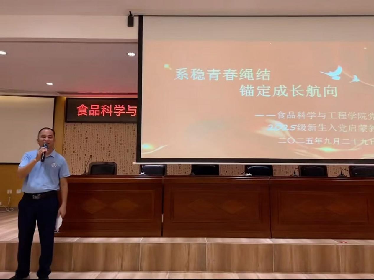 王开强书记以《稳青春绳结,锚定成长航向》为题,结合党史与新中国史,深入浅出地讲述了党的丰功伟绩。他还特别提到了纪念中国人民抗日战争暨世界反法西斯战争胜利80周年阅兵式,直观反映了我国国防科技的发展和现有水平,展现了中国的强大,也增强了每一个中国人的家国情怀和民族自信。王开强书记强调,入党不仅是一种荣誉,更是一份责任,希望同学们坚定理想信念,积极向党组织靠拢,关心时事政治,刻苦学习,努力奋斗,立志成为一名四有好青年。