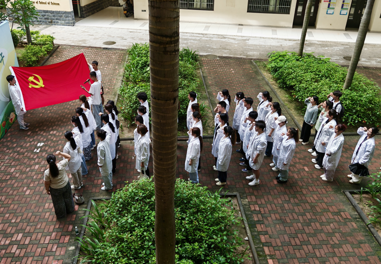 活动伊始,全体参与师生党员面向党旗庄严宣誓,重温入党誓词。铿锵有力的誓言回荡在活动现场,彰显了党员们对党的忠诚与信仰的坚定。在实践环节,大家分组协作,将糯米、粽叶、猪肉等食材化作一个个“初心粽”。从卷粽叶、填糯米到系棉线,每一道工序都承载着对传承传统文化的敬意。活动中还设置了“端午知识有奖问答”环节,围绕党史知识、端午习俗等内容设计题目,师生踊跃抢答,现场气氛热烈。活动尾声,师生党员将亲手制作的1000余个粽子分发给全院师生。部分党员还将粽子送到同学宿舍,与大家共品粽香、共话成长。
