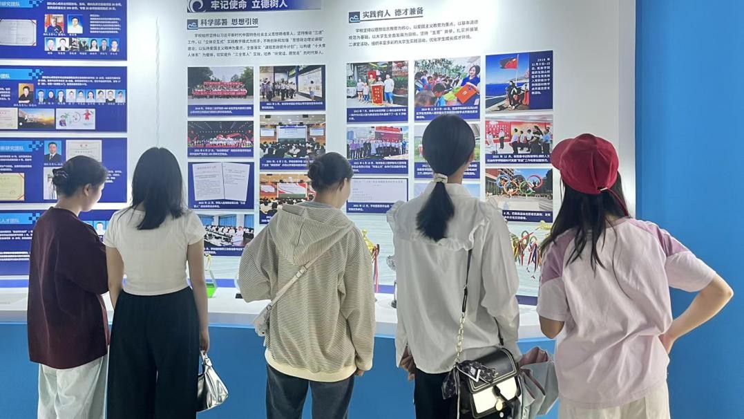 活动伊始,讲解员以“山海愿景”展区为起点,为新生们详解学校“1236”发展战略的深刻内涵。当看到“建设1个愿景、锚定2个目标、握紧3个抓手、走好5条主线”的蓝图展板时,新生们或驻足研读,或拿出手机记录,这些关乎学校未来发展的规划,也让他们开始思考个人成长与学校发展的同频路径。